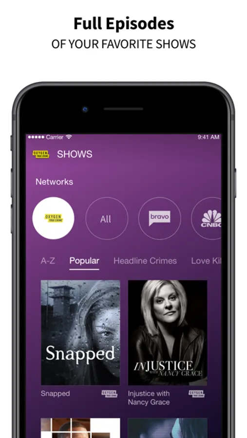 The Oxygen app is the best place to catch up on the most recent season of your favorite true crime shows, watch live TV, and stream movies and past season content! Download the Oxygen app now to watch full episodes of Snapped, Dateline: Secrets Uncovered, Buried in the Backyard, AND MANY MORE!
