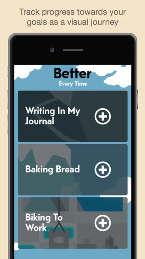 Better Every Time's unique progress tracking system uses metaphor and light journalling to capture your progress. The combination of habit-formation psychology and personal storytelling helps you see how you're getting better. And that fuels your motivation to keep going when most others will give up.