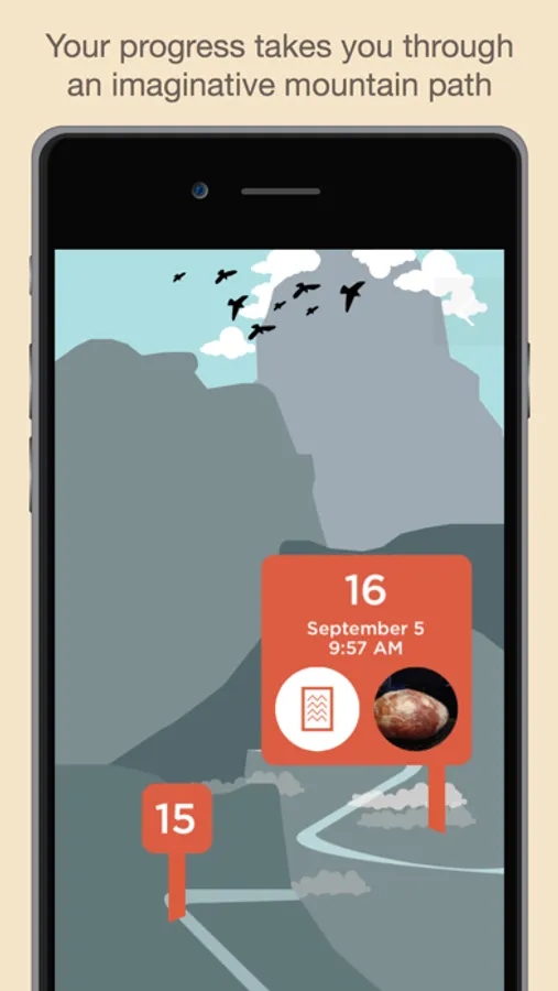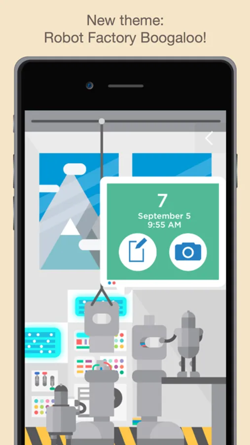 The free version lets you track one goal at a time with the beautiful mountain theme. In-app purchases unlock multiple journeys tracking up to three goals at once, and the quirky Robot Factory Boogaloo theme.