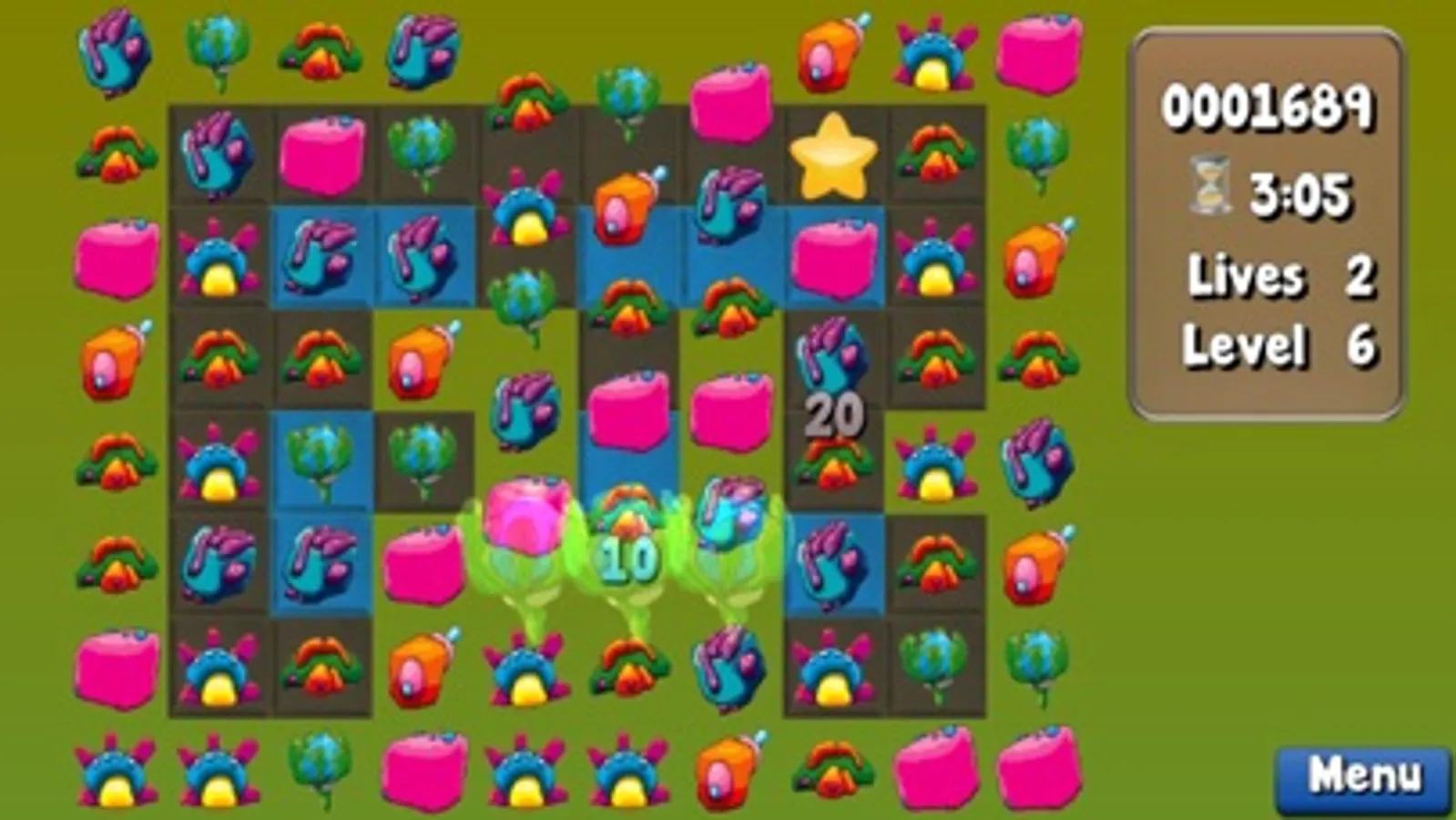 Creatures is an strategic match 3 puzzle game, to play move the creatures to connect 3 or more of the same type.