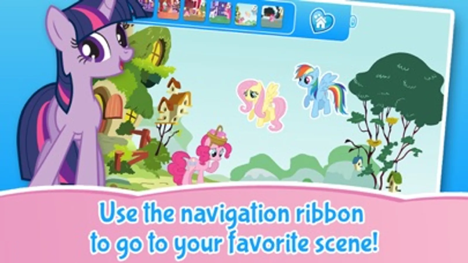 •Your favorite ponies are here: Pinkie Pie, Rainbow Dash, Fluttershy, Applejack, Twilight Sparkle and more!