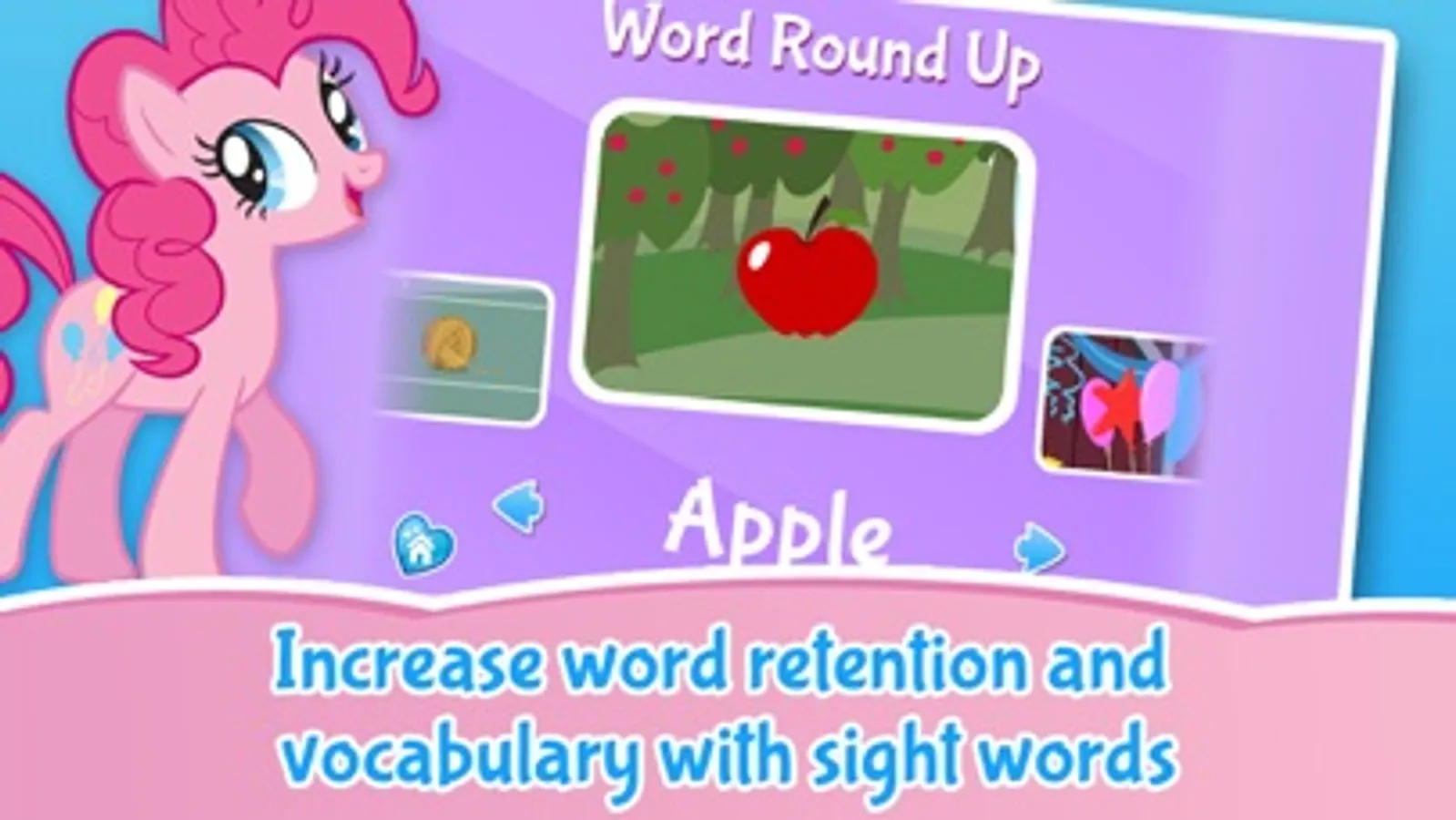 Bold graphics, bright colors and lots of animations make Party of One an enjoyable and engaging way to be entertained and practice reading skills. Perfect for My Little Pony fans and beginning readers.