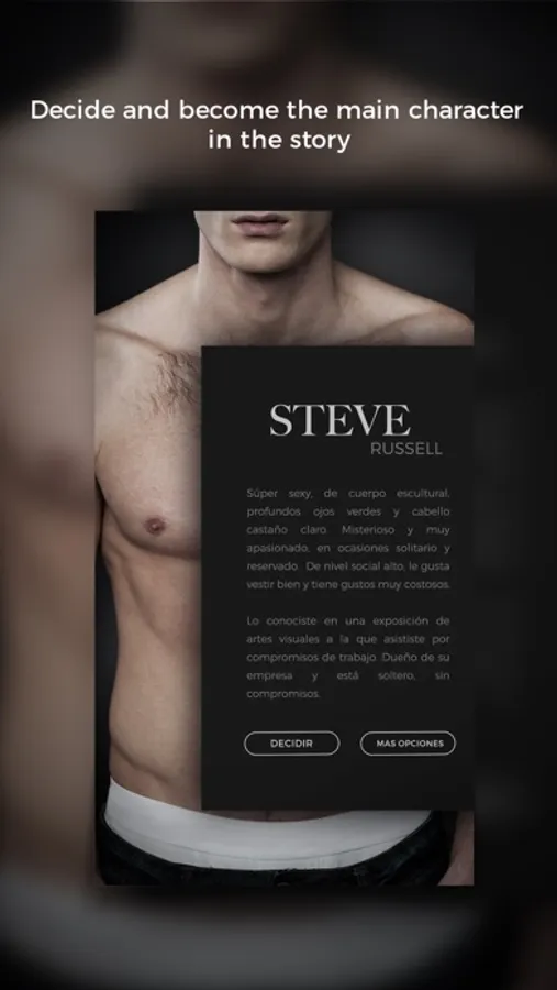 He is super sexy, with a sculpted body, deep green eyes, and light brown hair. He is mysterious and very passionate, at times lonely and reserved. Socially active likes to be well-dressed and have very expensive taste. You met him at a visual arts exhibition, which you attended with work. He has his own company and is single with no commitments.