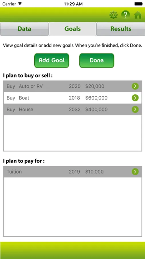 FINANCIAL PLAN WIZ is not a short term budgeting app. It is a long-term strategic planning app that allows you to assess your lifetime financial goals with the flexibility of performing ‘what if’ analysis at any time, so users can conveniently assess the impact of alternative goal, income and expense, saving and investing return assumptions.