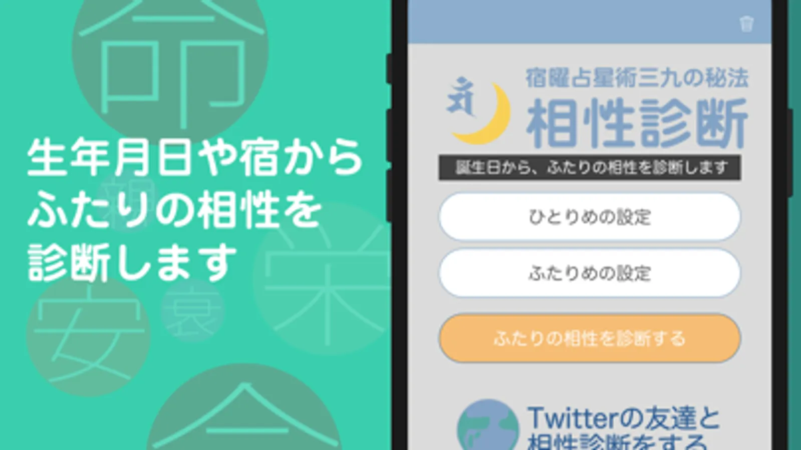 Twitterの友達と生年月日を伝え合うことなく診断ができます。