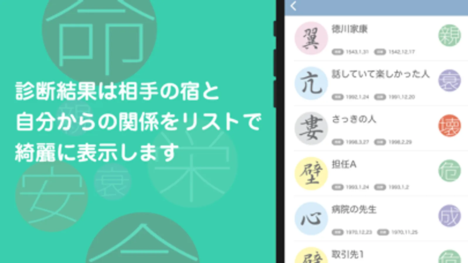 起動してご自身の生年月日を入力後、以下の機能がご利用いただけます。