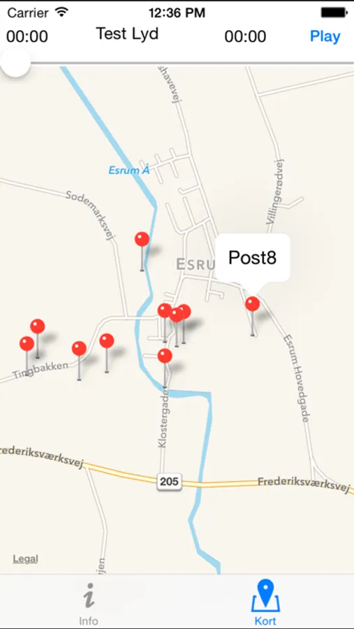 Ved turens start skal du starte denne app og vente til GPS forbindelsen er etableret. Herefter er det blot at følge kortet fra startstedet ved Esrum Kloster og følge ruten på ca. 3 km.