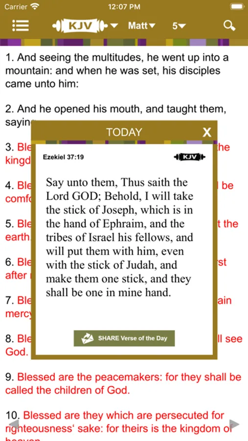 • Verse of the Day: each day a new verse is given and is easy to go to chapter, and share via Facebook, Twitter, text message and email
