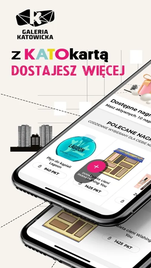 Dzięki aplikacji będziesz miał dostęp do wyjątkowego programu lojalnościowego! Pieniądze, które wydajesz na zakupach w Galerii Katowickiej trafiają z powrotem do Ciebie w postaci punktów. Punkty możesz zamieniać na nagrody ufundowane przez Galerię Katowicką lub na bilety na szczególne wydarzenia w instytucjach kulturalnych na terenie Katowic i miast ościennych.
