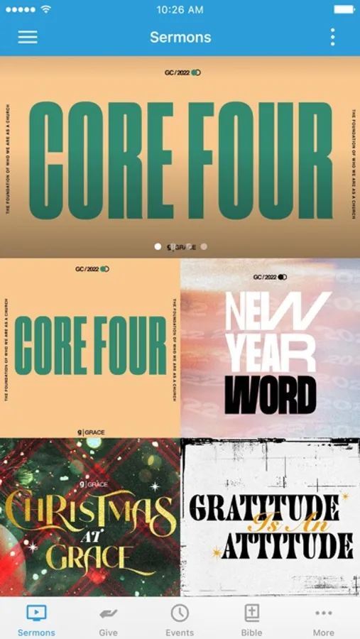 The Grace Church app lets you watch or listen to current and previous weekend messages on demand, listen to worship from Grace Music, as well as access the Bible, event information, service times, and social media.