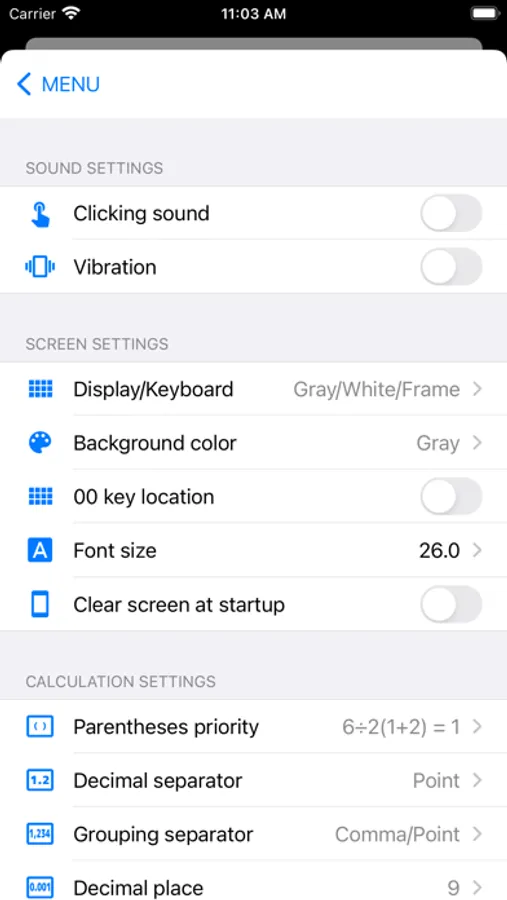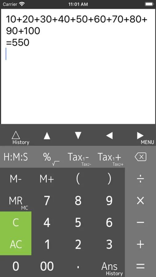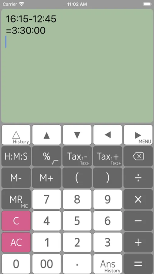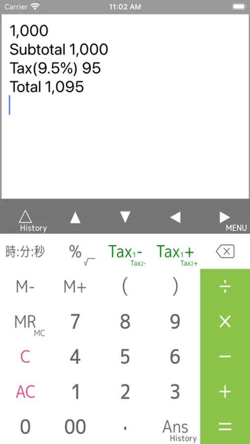 - Four arithmetic operations, root, percentages, time, tax and parentheses calculations