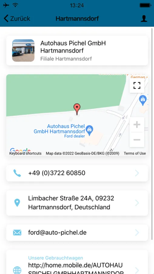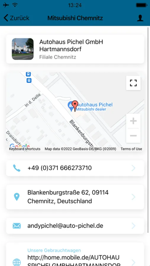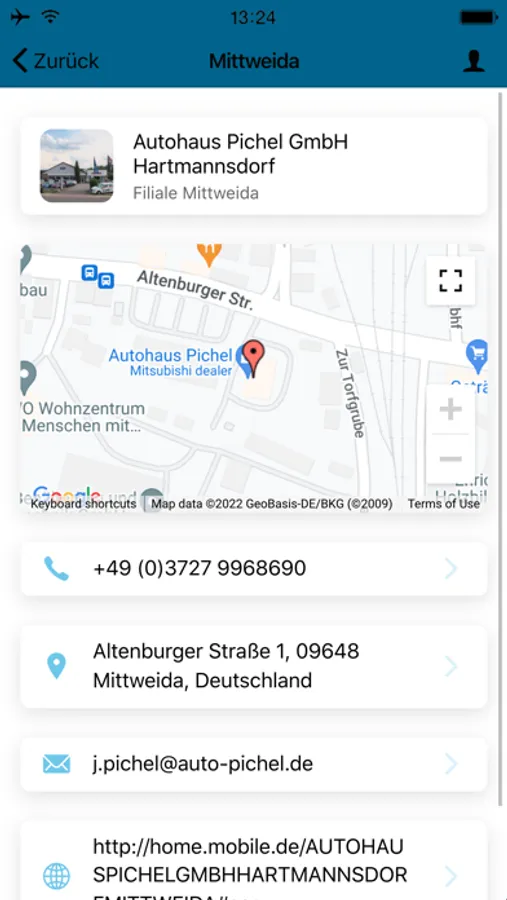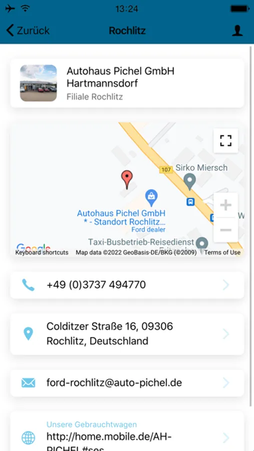 Die Autohaus Pichel GmbH Hartmannsdorf Applikation zum Unternehmen.