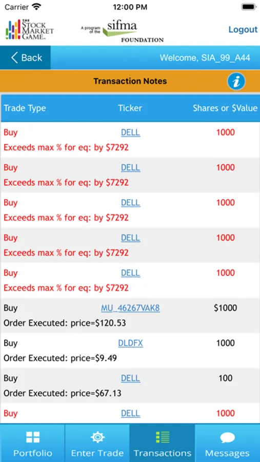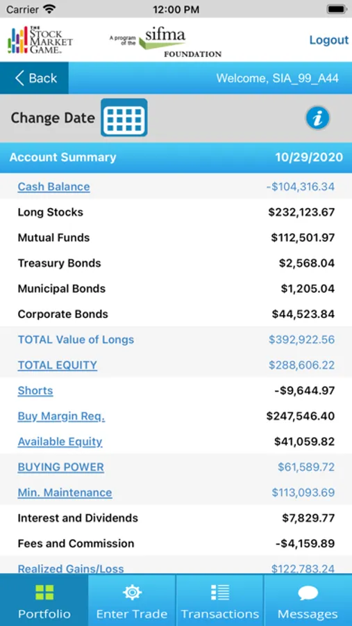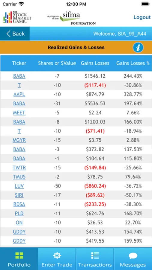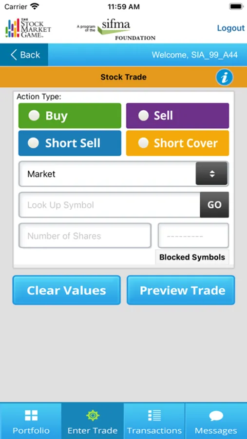 The SMG mobile app works in conjunction with the SMG student team portfolios, engaging students in meaningful second screen experiences. The app syncs with standard SMG portfolios to provide current Account Summary, Pending Transactions, Transaction Notes, and market news information. The app will also allow teams to look up ticker symbols and enter trades.