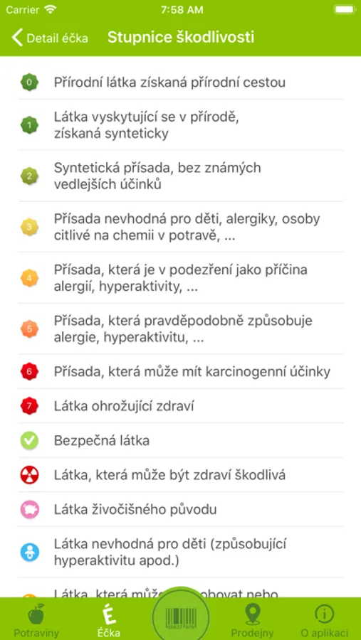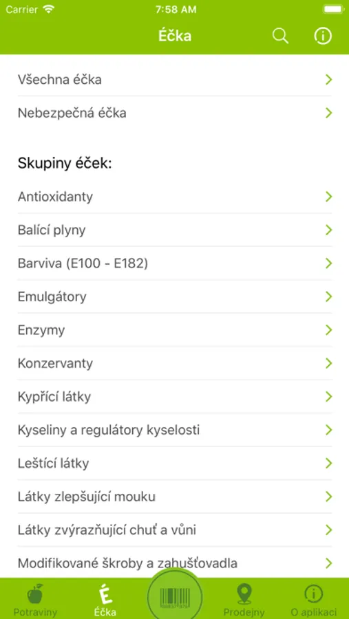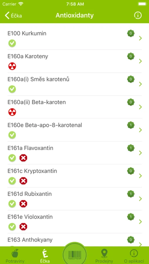 Seznam Éček: detailní informace včetně označení jejich nebezpečnosti. Praktické informace už budete mít vždy po ruce ve vašem mobilu, vyhledávat lze podle číselného kódu i názvu a to i bez připojení k internetu.