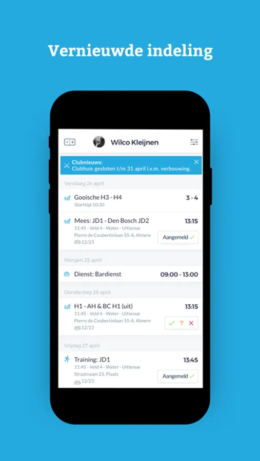 De app is een onmisbare tool voor ouders, spelers, trainers, coaches en managers.