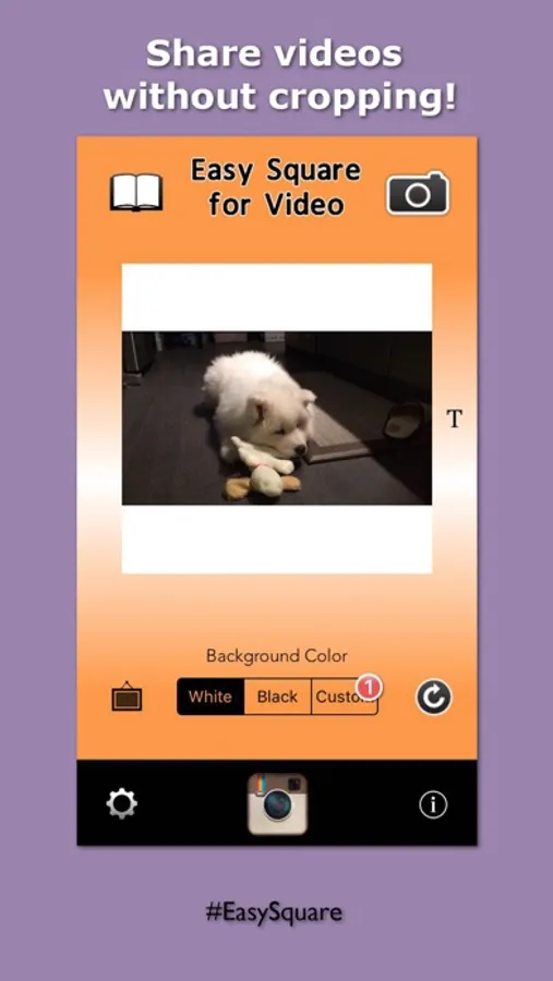 Easy Square for Video helps you quickly post your videos to Instagram without cropping by adding sidebars to make your video square! Here's some 5 star ratings from happy users: (thank you!!)