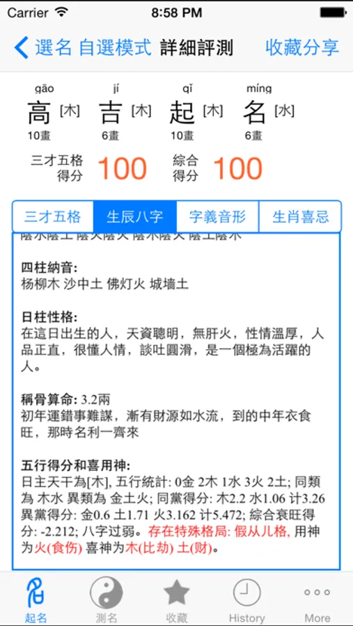 * 專業生辰八字、漢字音律、意義、字形等方面的研究, 判別結果精確無誤
