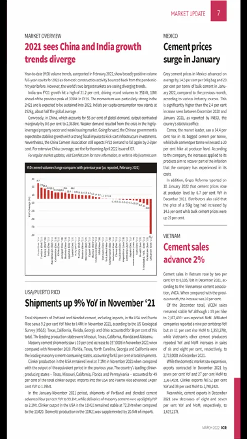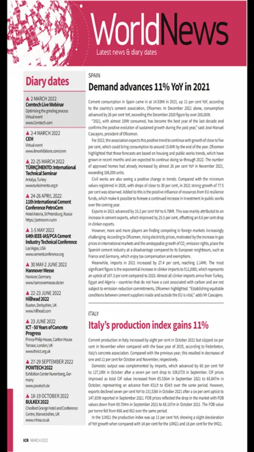 Whether you are involved in the production, trade, transportation, distribution of cement, clinker and allied products, International Cement Review (ICR) reports all the latest global cement developments each and every month. Subscribers can now download the full magazine on your tablet device and enjoy ICR wherever you are in the world.