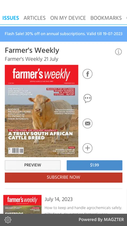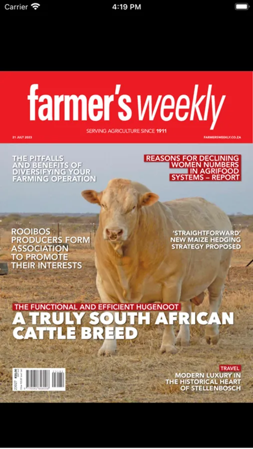Farmer’s Weekly is an agricultural magazine based in South Africa, targeting the whole of Southern Africa. The magazine is committed to advancing the interests of the region’s farmers and its agricultural industry by serving as a mouthpiece for the industry and by keeping its readers informed of the latest developments in the agricultural sector.