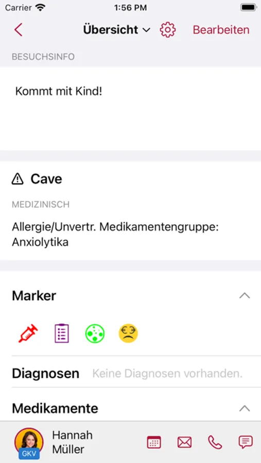Diktieren Sie mit der iOS-internen Spracherkennung ab sofort alle Karteieinträge an Ihrem iPhone oder iPad. Nehmen Sie Fotos oder Videos auf, die sofort in der Patientenkartei gespeichert werden und in Echtzeit auf den anderen Macs, iPhones und iPads der Praxis abrufbar sind.