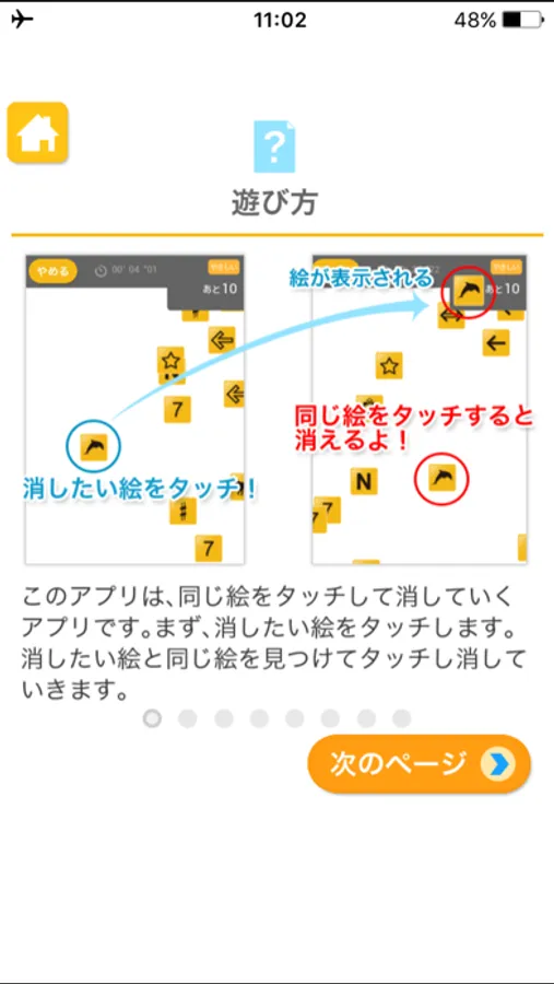 同じ絵をタッチしながら反射神経・動体視力を鍛えるアプリです。