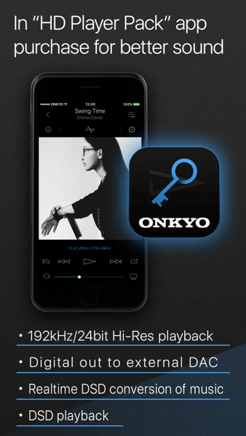 • Upgrade to HD Player Pack via in-app purchase and experience 192 kHz/24-bit high-resolution FLAC, WAV, and DSD playback