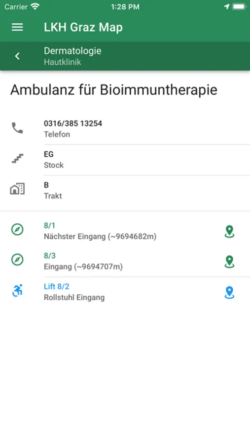 Dieses App soll unseren Patienten und Besuchern helfen, schnell und ohne lange Umwege den richtigen Eingang zu finden.