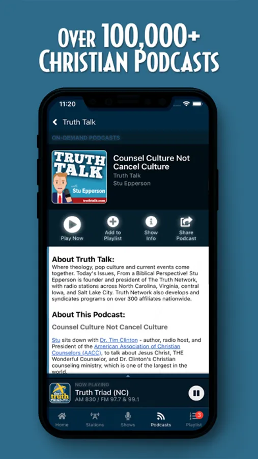 The official app for Truth Broadcasting Network. Truth Network's mission is to inspire all to experience 'The Truth' of Jesus Christ! Listen to one of our live, inspiring radio stations with unique content 24x7x365 and plus listen to on-demand from over 100,000 archived podcasts from The Truth Podcast Network and other broadcast ministries, churches and other Christian partners.