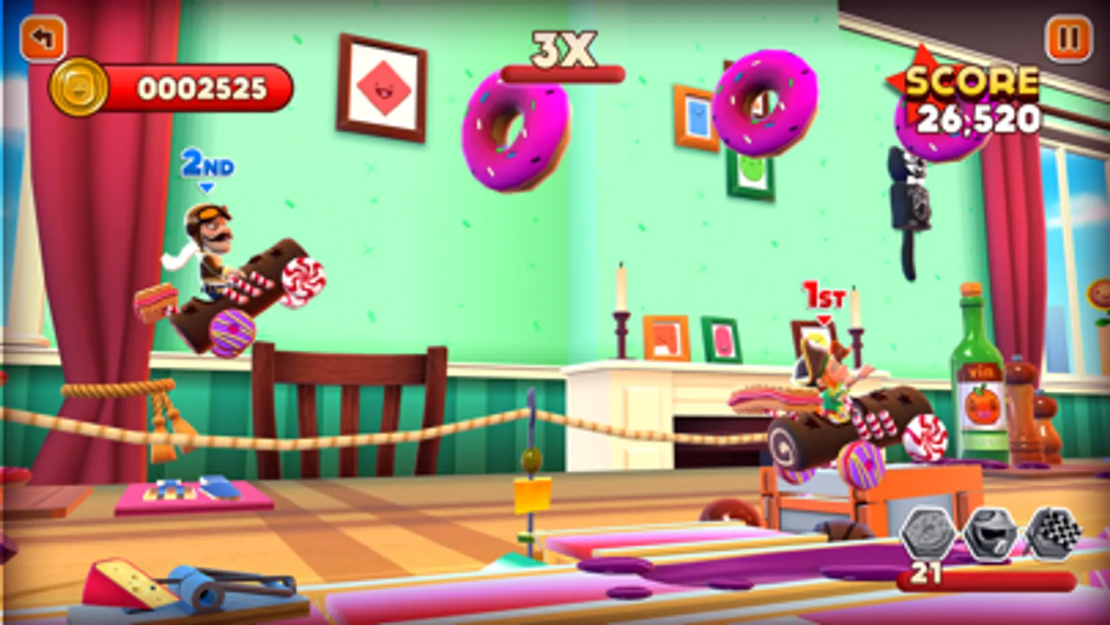 Defy death with dozens of new vehicles! There’s motorbikes, cars, airplanes… even a tank and a runaway firework! Fight remote control helicopters, dodge snooker balls and use a block of cheese to ramp over bowls of soup!