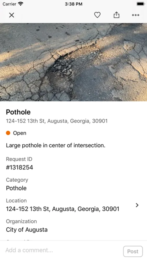 Augusta 311 enables real-time collaboration with constituents reporting potholes, overgrown vegetation and other issues from anywhere in the city using their mobile phones
