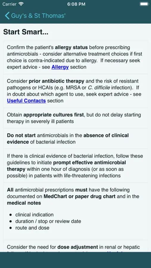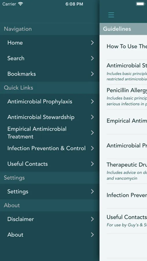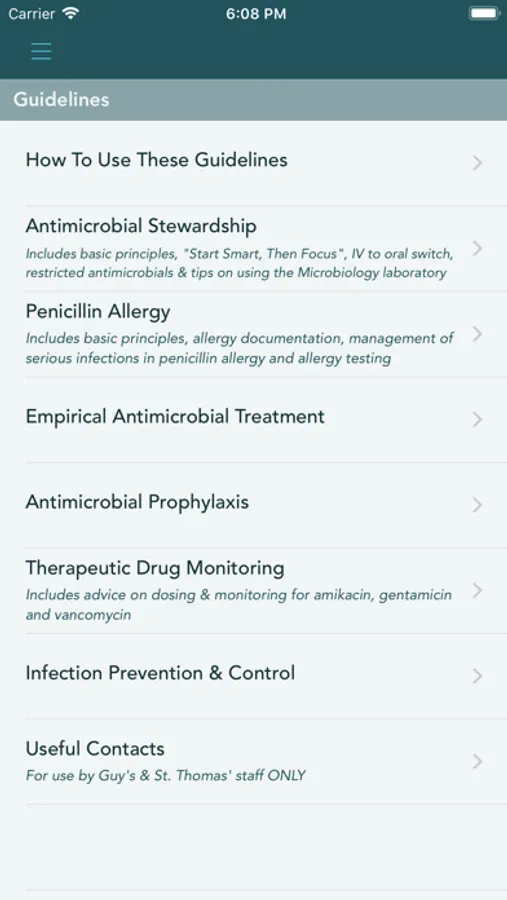 The application makes it easy to access antimicrobial prescribing guidelines to treat a wide variety of common infectious diseases and prophylaxis guidelines for various procedures and conditions. Underpinning the application is out commitment to improving antimicrobial stewardship for our patients.