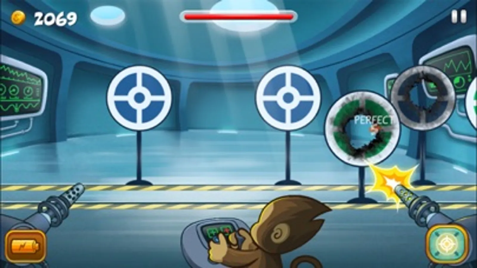 As you hone your interstellar monkey combat skills, earn character upgrades and power-ups for your arsenal, compete with friends for the top spot on the leader-boards, and face epic bosses.