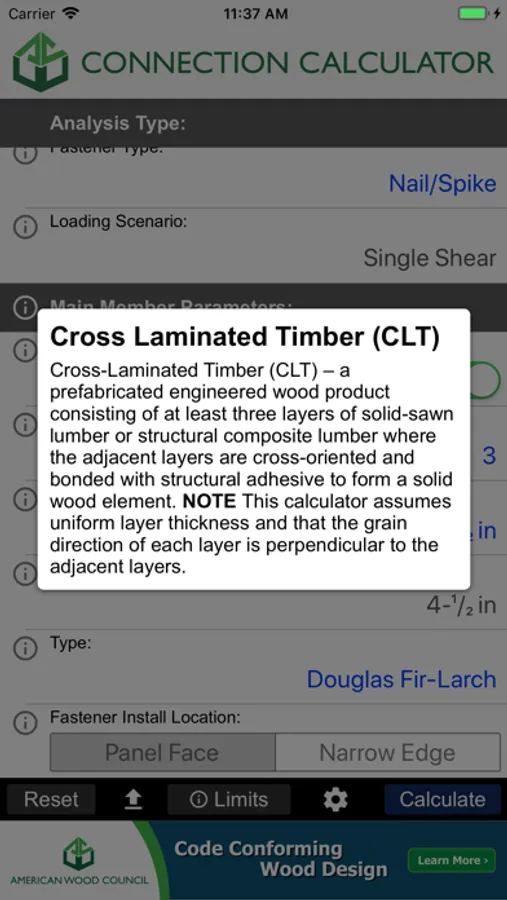 This Connection Calculator is not meant to be a replacement for the NDS and does not encompass all of its design options.