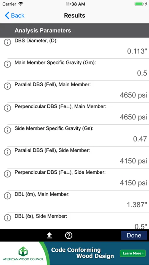 Provides users with a mobile approach to calculating capacities for single bolts, nails, lag screws and wood screws per the 2015 NDS. Both lateral (single and double shear) and withdrawal capacities can be determined. Wood-to-wood, wood-to-concrete, and wood-to-steel connections are possible.