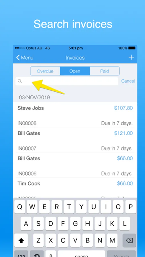 Please download our free invoice app today to see it yourself. You can start a free trial without singing in.