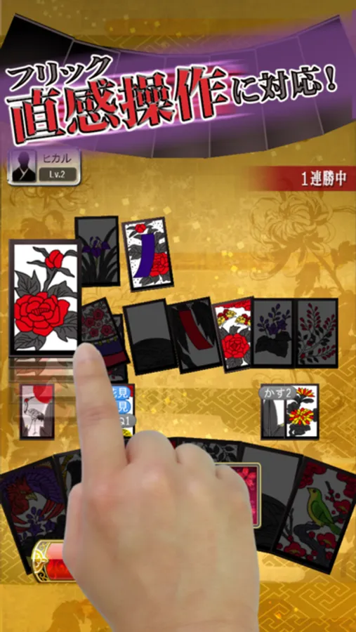 ・札をスライドすることでも場に出すことが出来る直感(フリック)操作!