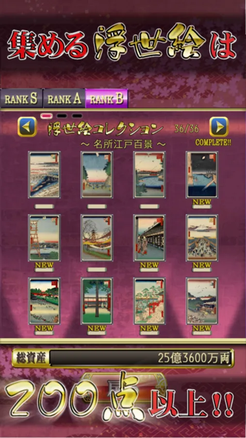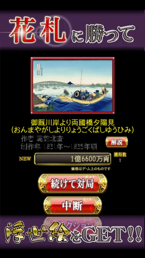 一定以上の得点で勝負に勝てば、浮世絵コレクションがもらえます。