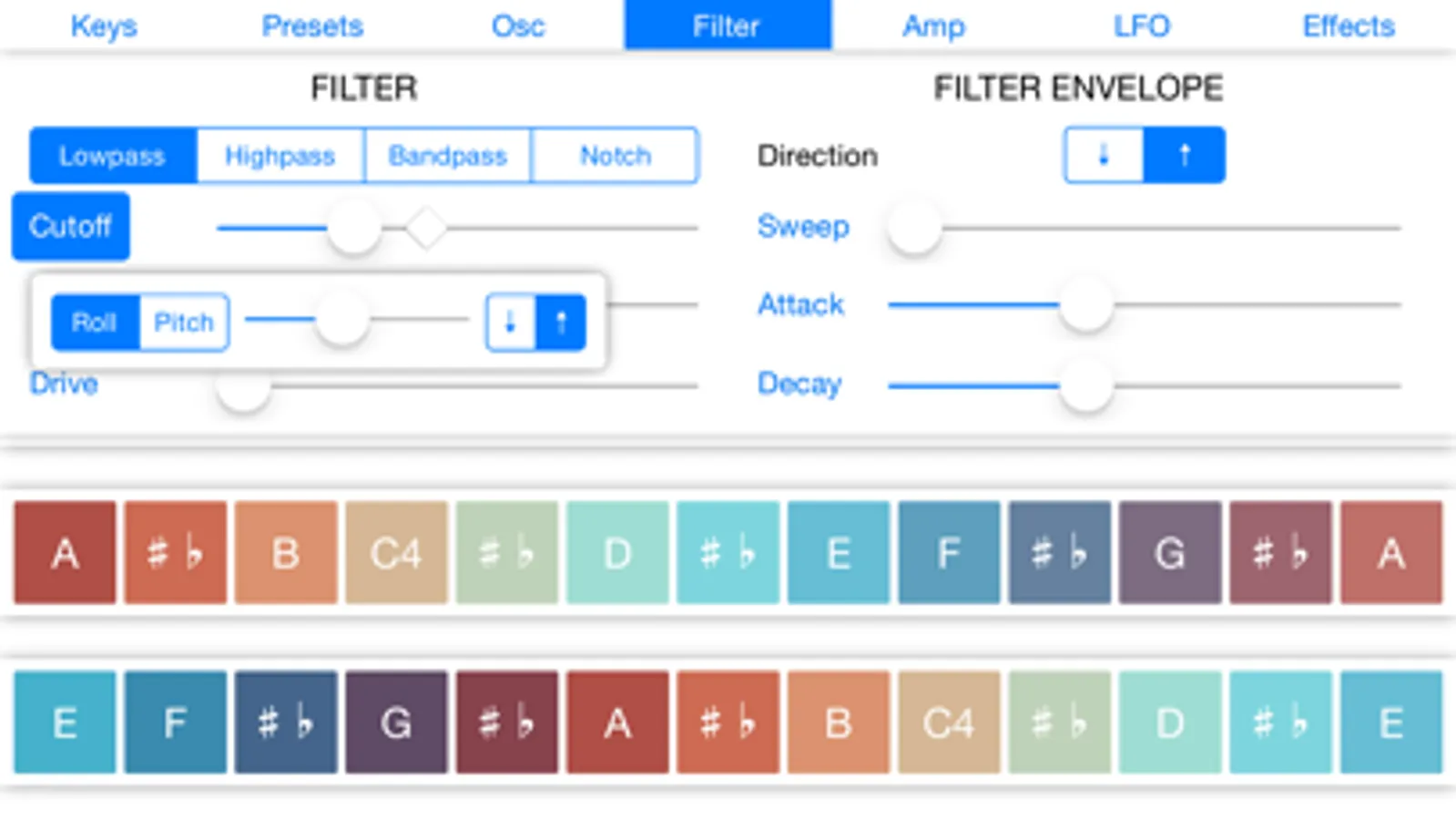 - Polyphonic legato ties by sliding across keys. Compatible with a variety of apps including Animoog and ThumbJam.