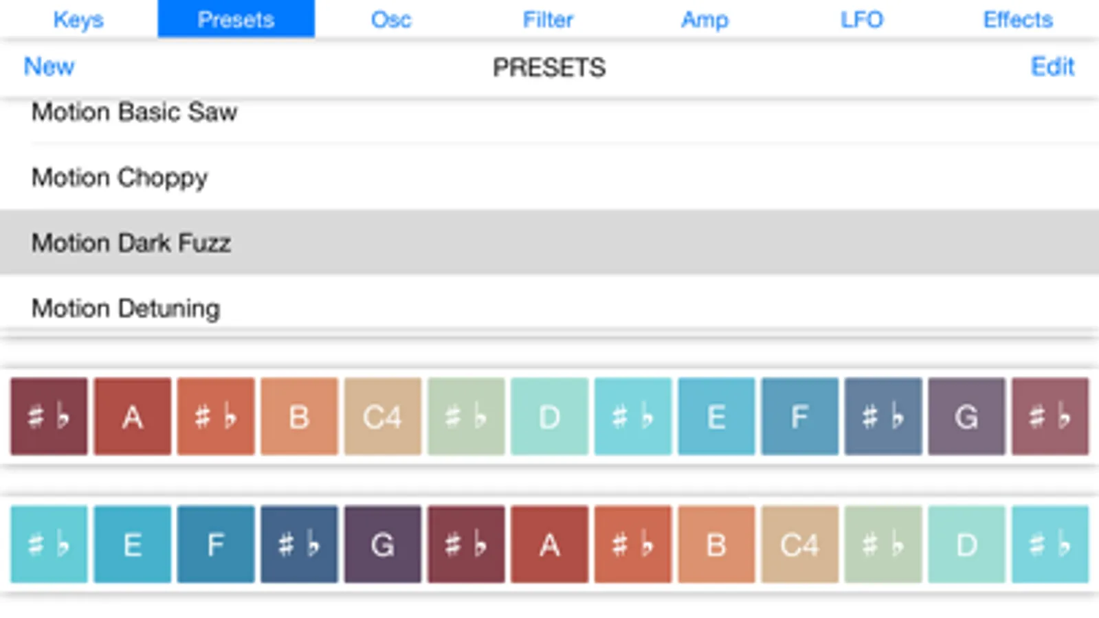 - Any slider-based synth parameter with blue or green text can be tapped to view its motion settings