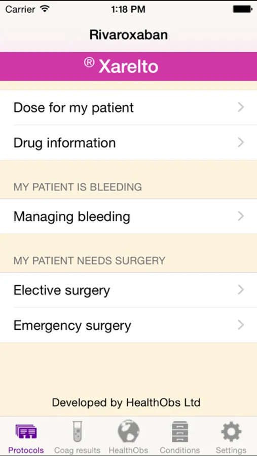 The Rivaroxaban App is designed for doctors to help them manage patients on the anticoagulant rivaroxaban. It will be useful to general practitioners, cardiologists, haematologists, neurologists, anaesthetists, emergency specialists and surgeons. In fact most clinicians will at some time have patients on anticoagulants and would find this App helpful.