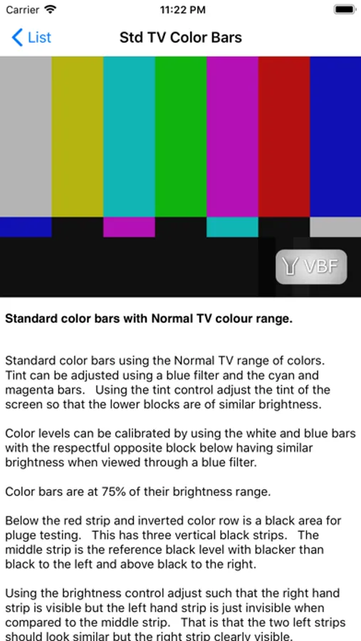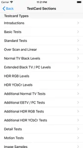 Further, each test card has an information section to give you concise information and instruction on how to use it. The more that can be gained form each test card, the more information is provided. For ease of use the instruction are displayed on the iPhone / iPad while simultaneously displaying the test card on the external display.