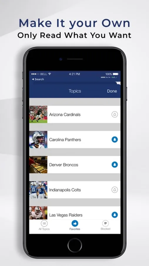 * A curated news stream of news about the NFL from all sources with no repeat stories - see all sources that covered a story with a simple tap
