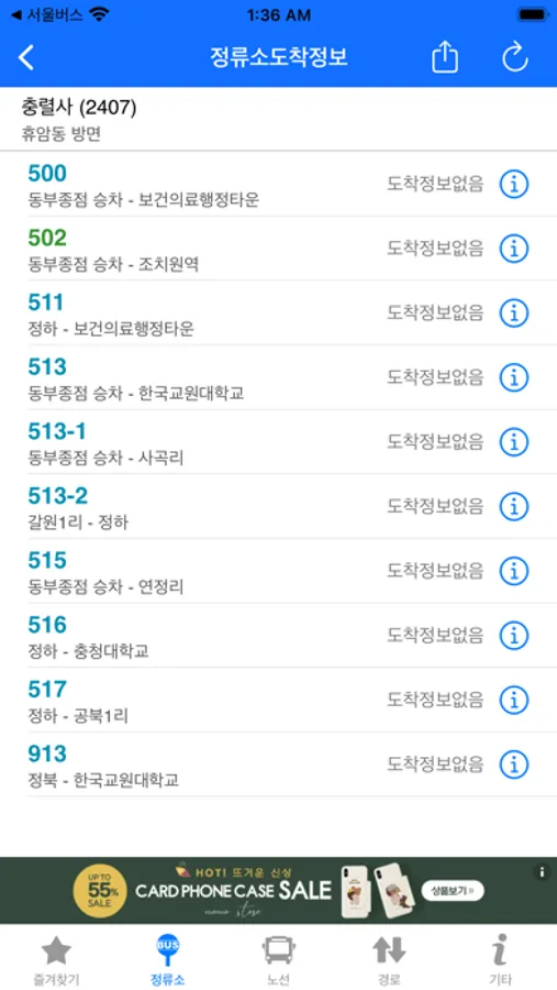 실시간도착정보는 청주시버스정보시스템에서 제공되며.