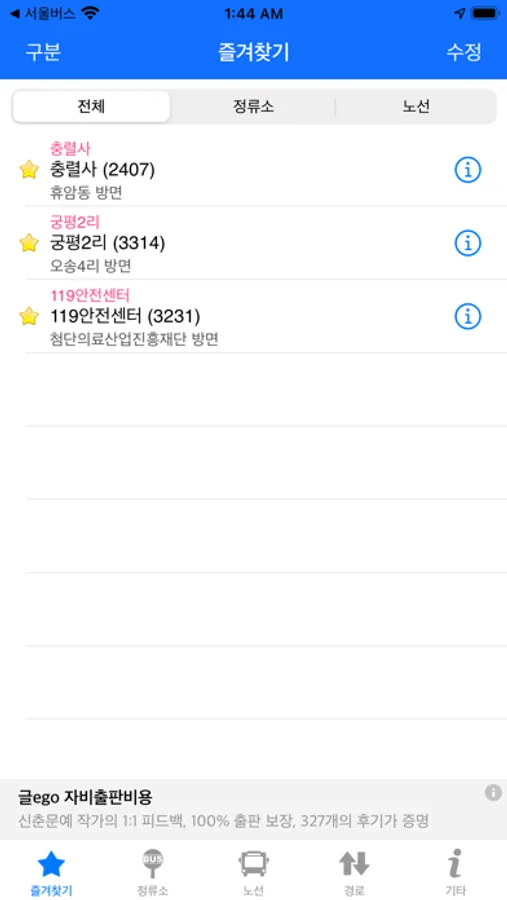 - 자주 이용하는 정류장 및 노선을 즐겨찾기로 등록