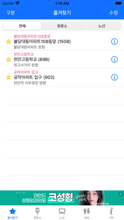 - 자주 이용하는 정류장 및 노선을 즐겨찾기로 등록
