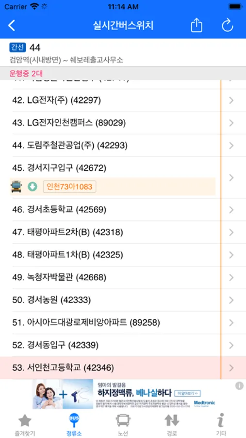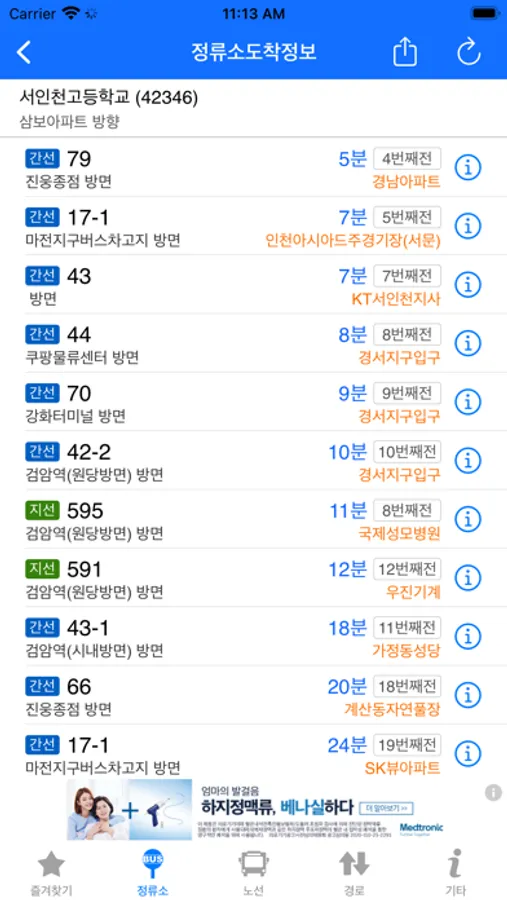 - 정류장 검색 및 버스 도착 시간과 현재 위치 제공