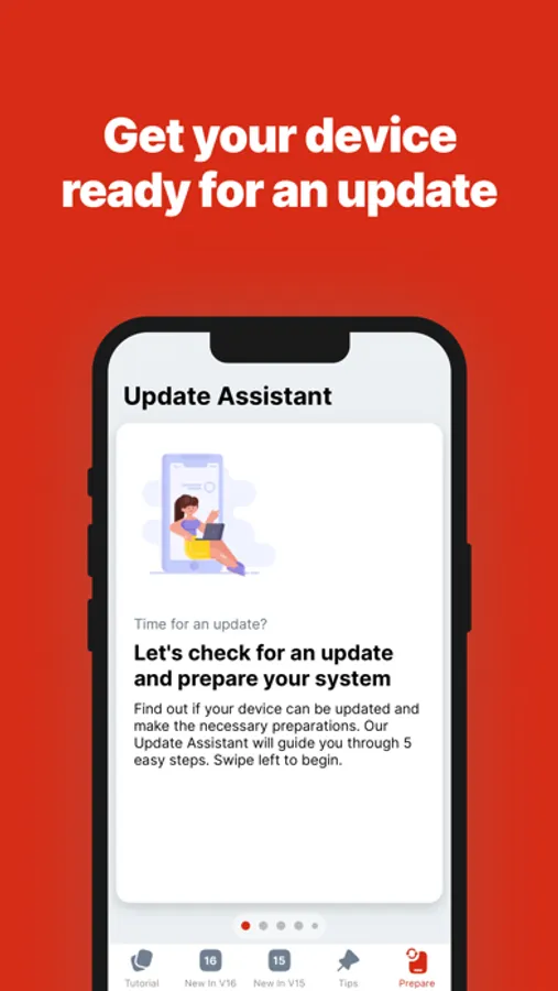 * Prepare your device for the iOS update by check its device stats, battery status, backups and storage. We’ll let you know when you’re ready to update!