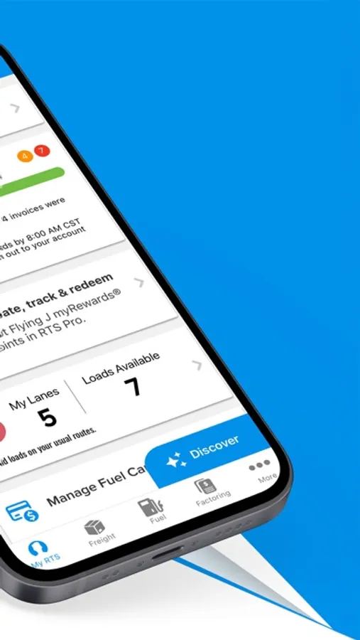 The only trucking app you need, RTS Pro has all the essential tools to help you revolutionize your business operations. Discover fuel savings wherever you go, upload invoices for same-day payment and search and book loads through our exclusive load board.