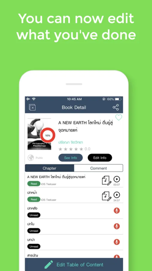 This application supports multiple readers to read in each chapter from the same book. One may read only one chapter. Several chapters will be compiled into one book. Completed audio books or articles will be converted and transferred to “General Knowledge Hotline” 1414 which is a free service for the blind to listen to audio books on the phone.