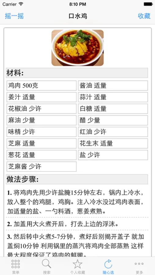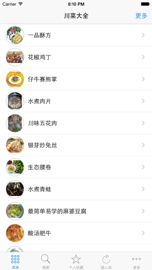 原生iOS界面,完美适配。最简洁清新的川菜辣味菜谱大全,离线数据,全设备通用。一键收藏,摇一摇随机选择菜谱,支持全文搜索。